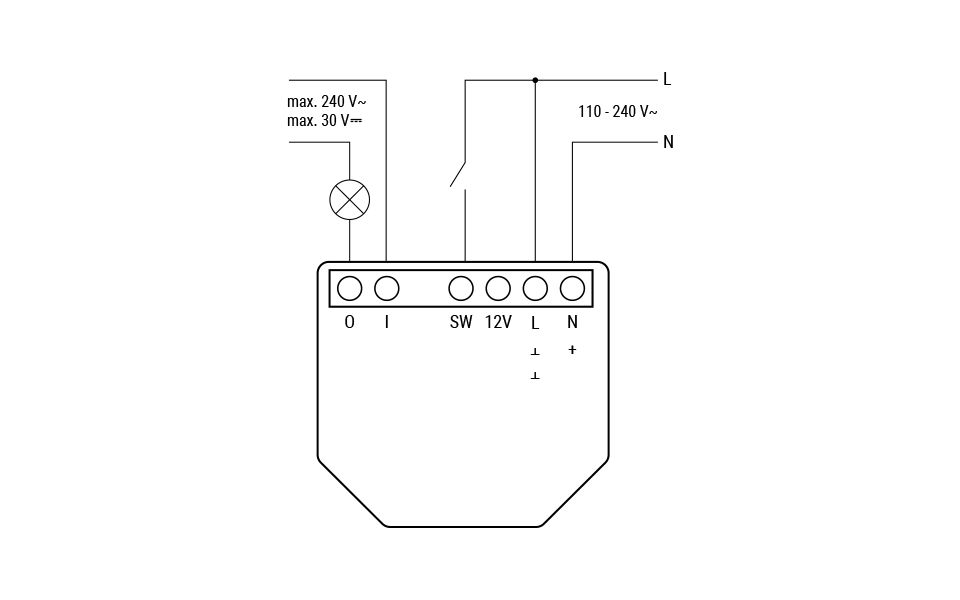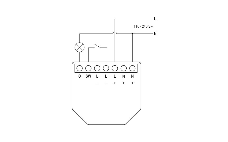 Der Anschluss des Anschluss des Shelly® 1 Gen4 Zeichnung: © Allterco Robotics Ltd.