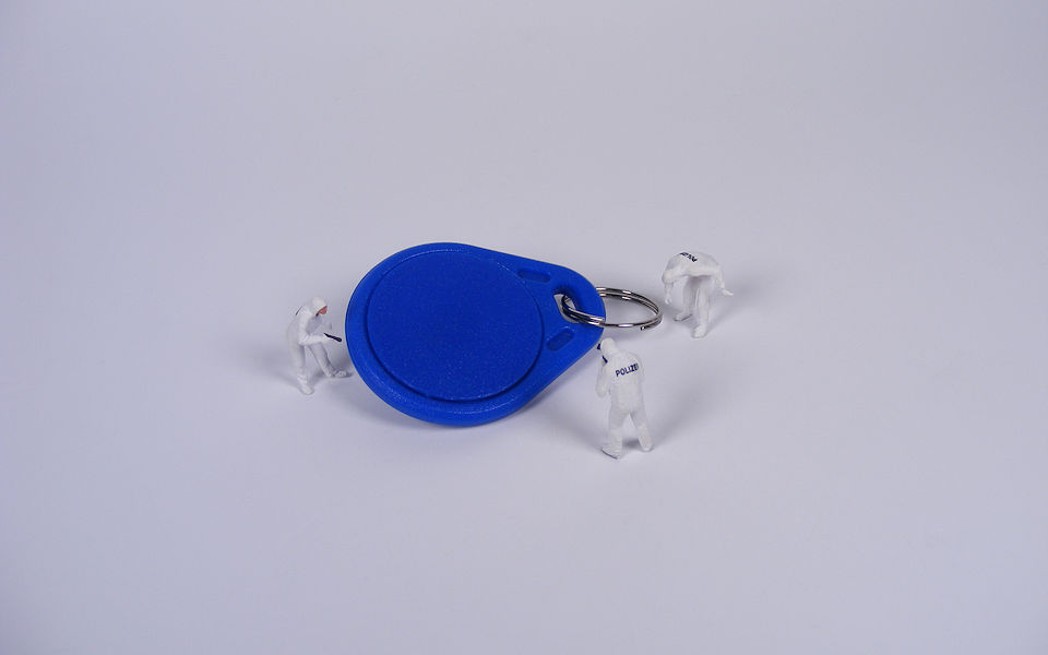 RFID-Tags mit einem Durchmesser von 25 mm sein, aber auch Blanko-RFID-Karten, RFID-Schlüsselanhänger oder kleine selbstklebende NFC-Chips sind nutzbar.