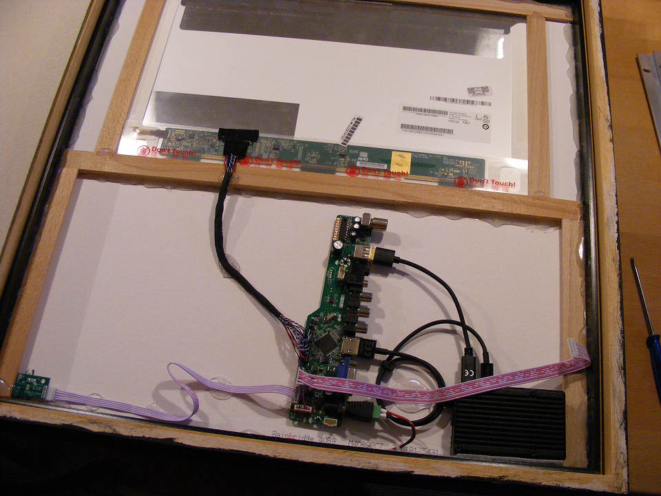 Der örtliche Glaser und Rahmenbauer hat mir einen sehr stabilen Rahmen gefertigt und zusammen mit dem Spiegel-Glas (Mirropane™ Chrome Spy) von Pilkington, bestellt bei