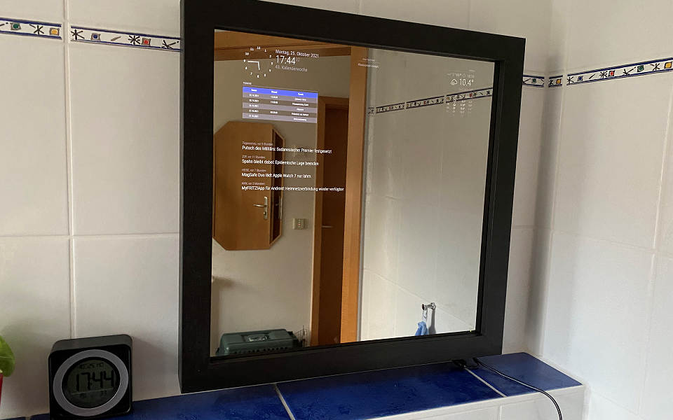 Der SmartMirror ist endlich fertig und hängt an der Wand.