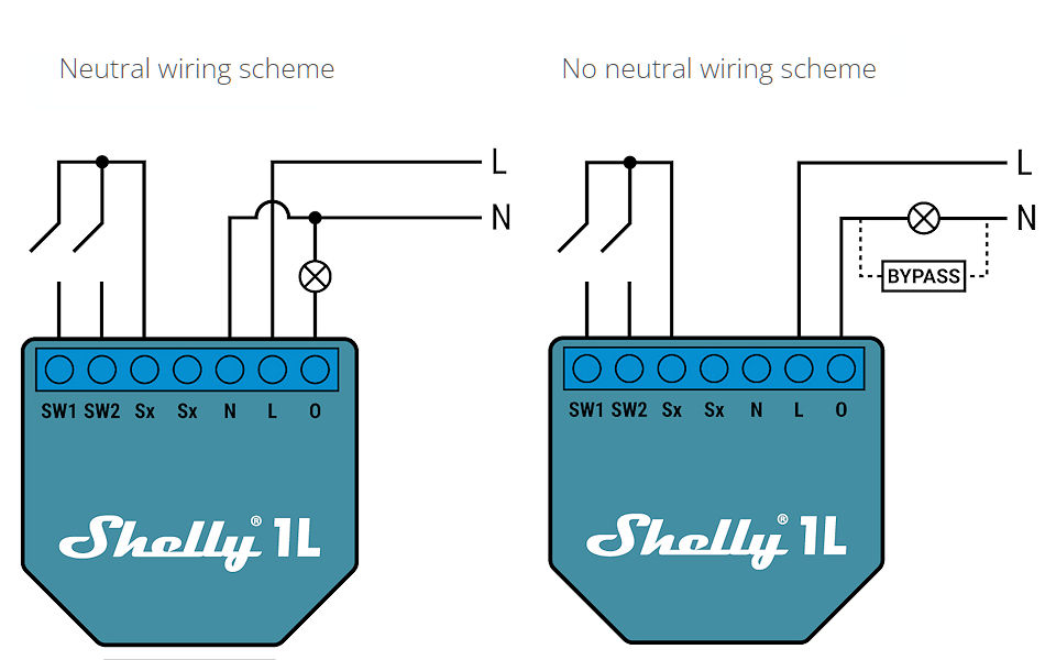 Der Shelly® 1L ist ein Einbau-Modul und muss direkt mit den Verbrauchern verbunden werden.