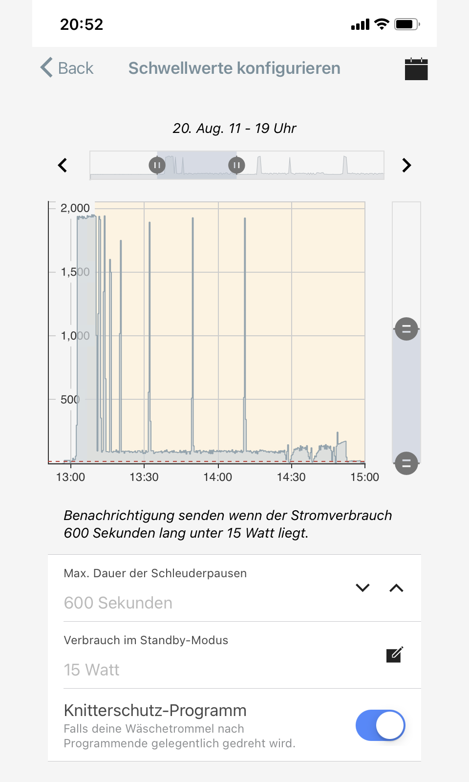 Die WLAN-Steckdose misst kontinuierlich den Stromverbrauch des angeschlossenen Gerätes (das kann natürlich auch ein Wäschetrockner sein) und meldet "Gerät fertig" über die zugehörige laundrify-App.