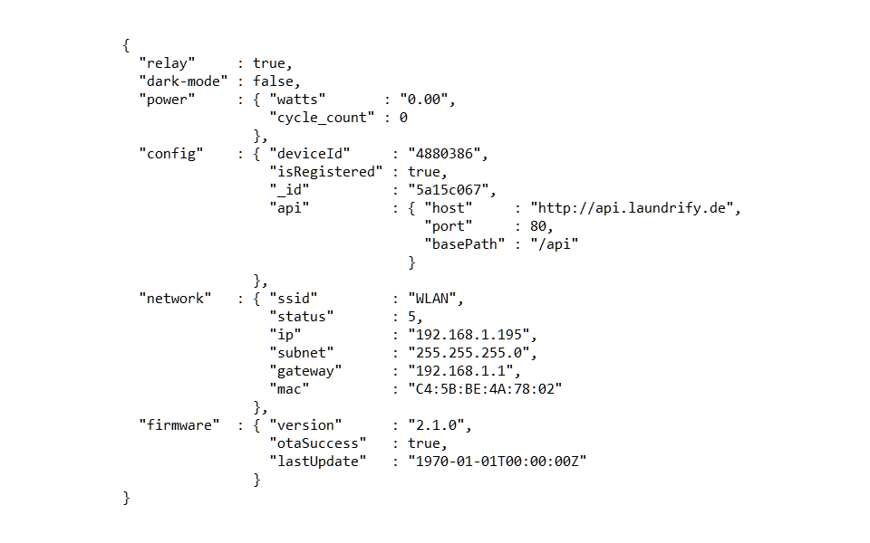 Eine Anbindung an die Haussteuerung ist über <ip-adresse>/status denkbar,