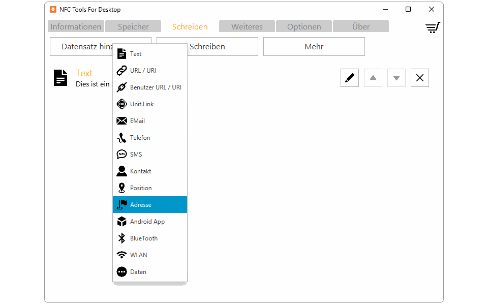 Das Schreiben und Lesen der Daten kann über kostenlose NFC-Tools von