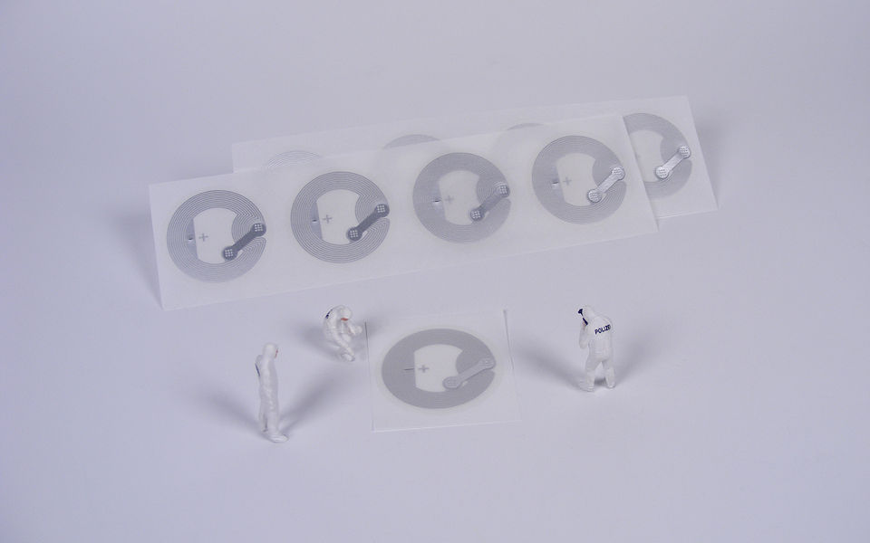 RFID-Tags mit einem Durchmesser von 25 mm sein, aber auch Blanko-RFID-Karten, RFID-Schlüsselanhänger oder kleine selbstklebende NFC-Chips sind nutzbar.